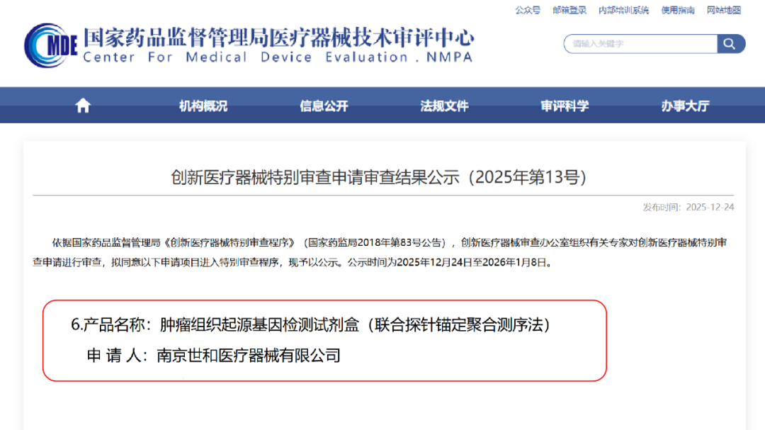 以新入选第九批制造业“单项冠军”的南京世和基因生物技术股份有限公司为例(以下简称世和基因),该公司正围绕肿瘤精准医学领域,自主研发的“肿瘤组织起源基因检测试剂盒(联合探针锚定聚合测序法)”近期进入国家药监局创新医疗(002173)器械特别审查程序。该产品基于高通量测序技术,可实现近20种癌症的精准溯源,为原发灶不明或疑难病症提供分子诊断依据。